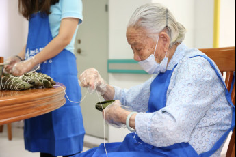 活动现场有很多熟悉的面孔,有熟悉的义工,广州东永港华燃气的一部分义工曾多次到这里探望长者。也有熟悉的长者,一位86岁的老奶奶在去年包粽子时就给大家留下来深刻的印象,老人家动作麻利,每一个粽子包裹得都很紧实标致,今年老人家依然是包粽子的主力。时隔一年,看到老人家身体还是那么的硬朗,让义工们感到很欣慰。